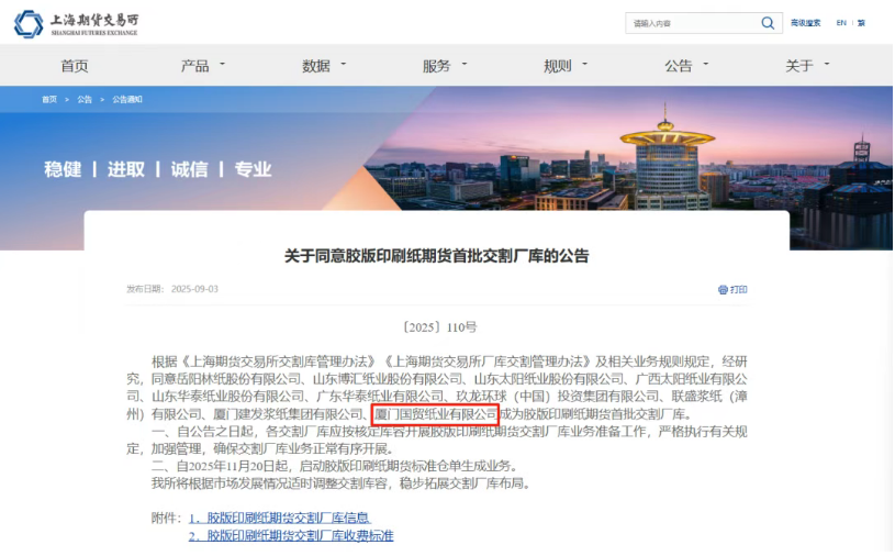 國(guó)貿(mào)股份獲首批上期所膠版印刷紙交割廠庫資質(zhì)